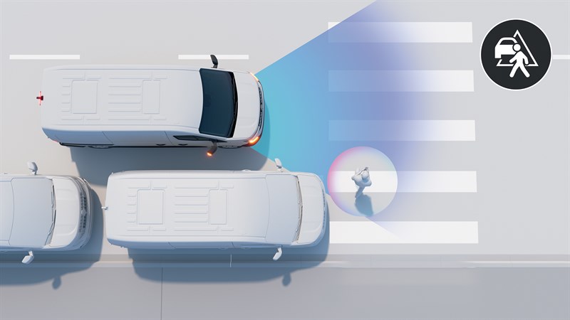 Sustav prepoznaje pješake i bicikliste koji dolaze sprijeda ili sa strane, kako bi spriječio sudar. U slučaju moguće nesreće sustav daje upozorenje. Ako reakcija vozača kasni, sustav automatski primjenjuje kočenje i po potrebi izvrši potpuni zaokret.
